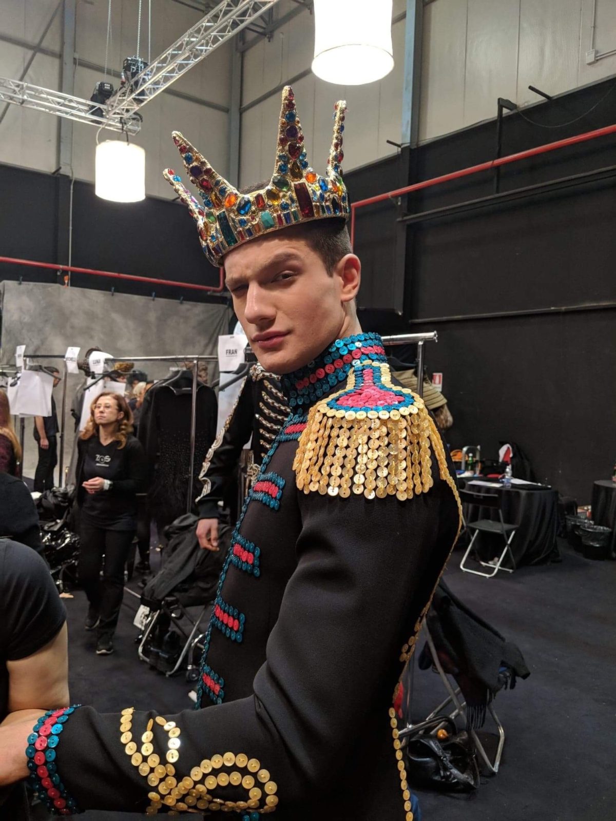 Το περιοδικό Attitude είχε την ευκαιρία βρεθεί στα παρασκήνια λίγο πριν από την επίδειξη στα περίφημα στούντιο Cinecittà της Ρώμης και να παρακολουθήσει τις ετοιμασίες για τα ρούχα, που εμπνεύστηκαν από τον Ιταλό σκηνοθέτη Federico Fellini, το Roma και το La Dolce Vita.