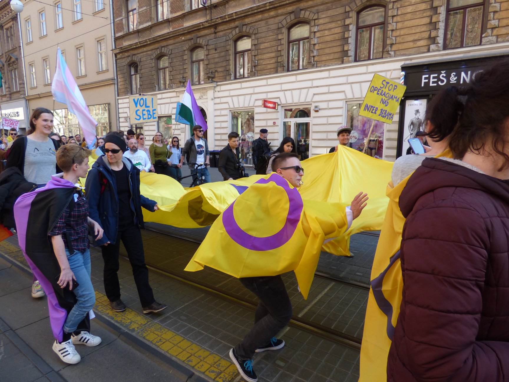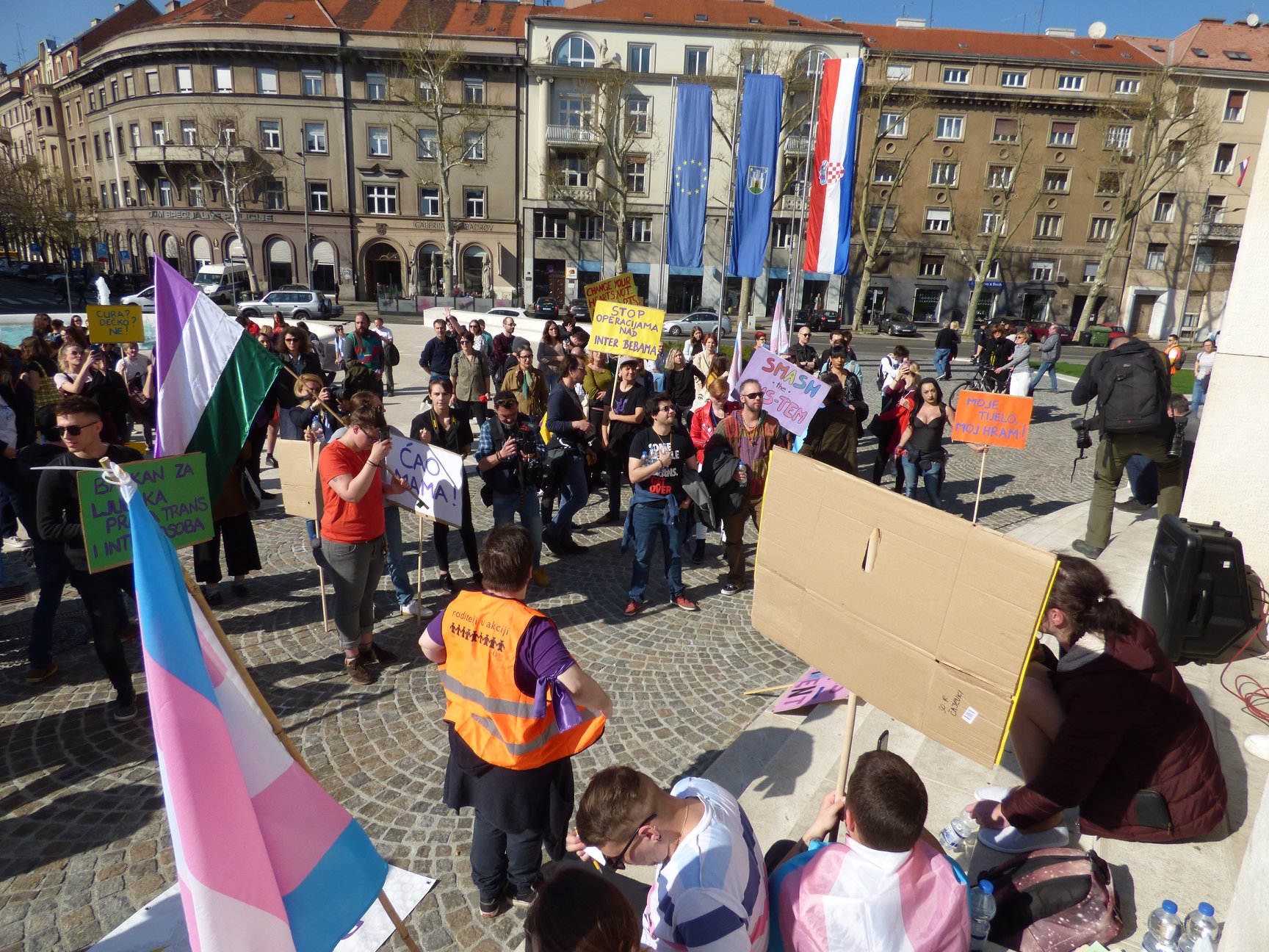 Το Ζάγκρεμπ το Σάββατο (30 Μαρτίου) που μας πέρασε γιόρτασε, όπου περίπου 300 άτομα συμμετείχαν στην παρέλαση. Συνθήματα αλληλεγγύης και ισότητας για τα intersex και τρανς άτομα πρωταγωνίστησαν: “Η αλληλεγγύη είναι το κλειδί” , είπε το άτομο Evan, που σήμερα είναι 30 ετών από την Σλοβενία και ασχολείται με την ακτιβιστική δράση για τα δικαιώματα των τρανς ατόμων: “Είναι μία πολύ συναισθηματική εμπειρία, γιατί όλα τα Βαλκάνια συμμετέχουν σ’ αυτό.”