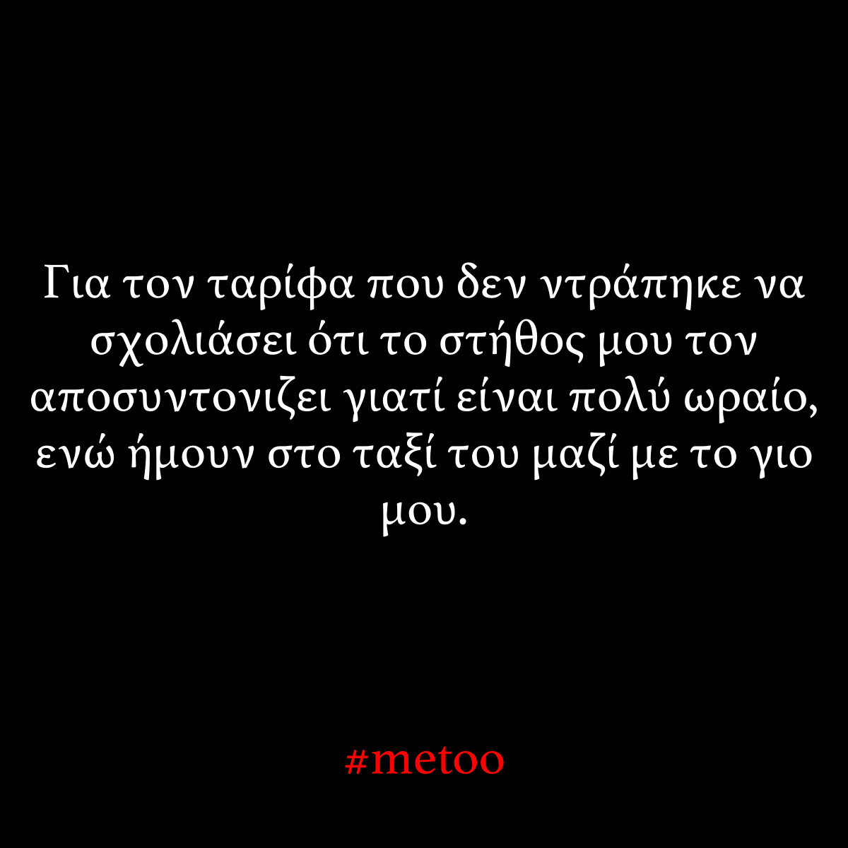 Πριν μερικές ημέρες, μία διαδικτυακή καμπάνια με την ονομασία #metoo έκανε την εμφάνισή της. Ως ένα αυτοδημιούργητο κίνημα ενάντια στη σεξουαλική παρενόχληση, το #metoo ξεκίνησε από μία μόλις γυναίκα και προκάλεσε μία ραγδαία αλυσιδωτή αντίδραση, κατά την οποία γυναίκες από όλο τον κόσμο παρακινήθηκαν και βρήκαν το θάρρος να δηλώσουν δημόσια πως έχουν κακοποιηθεί σεξουαλικά ή πως έχουν βιώσει παρενόχληση.
