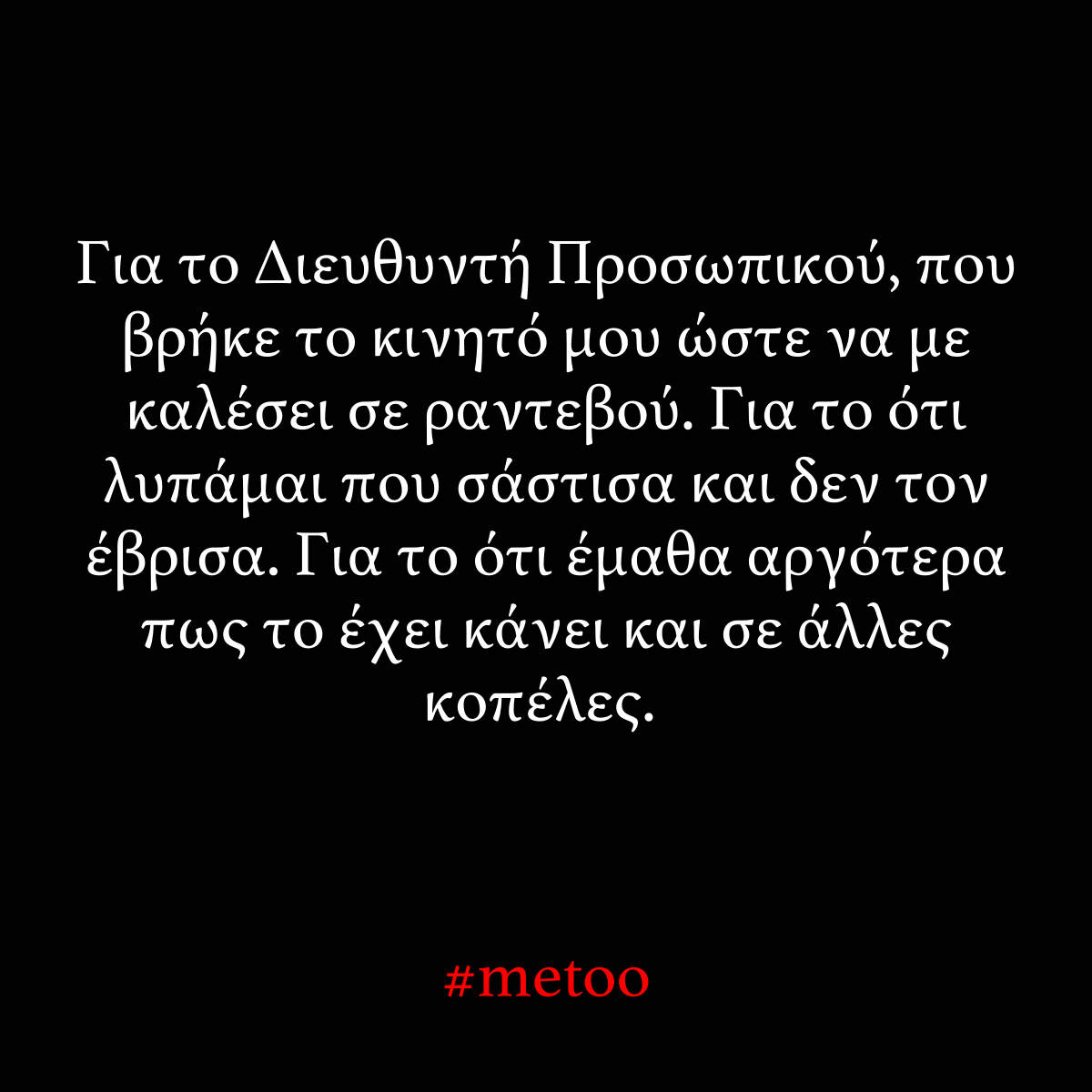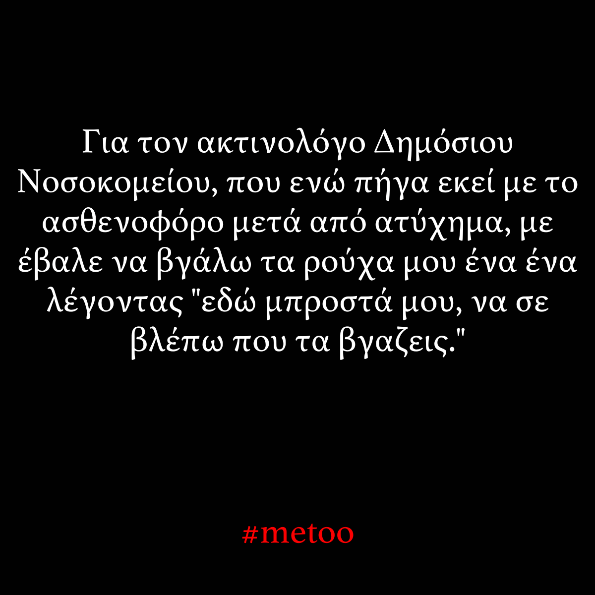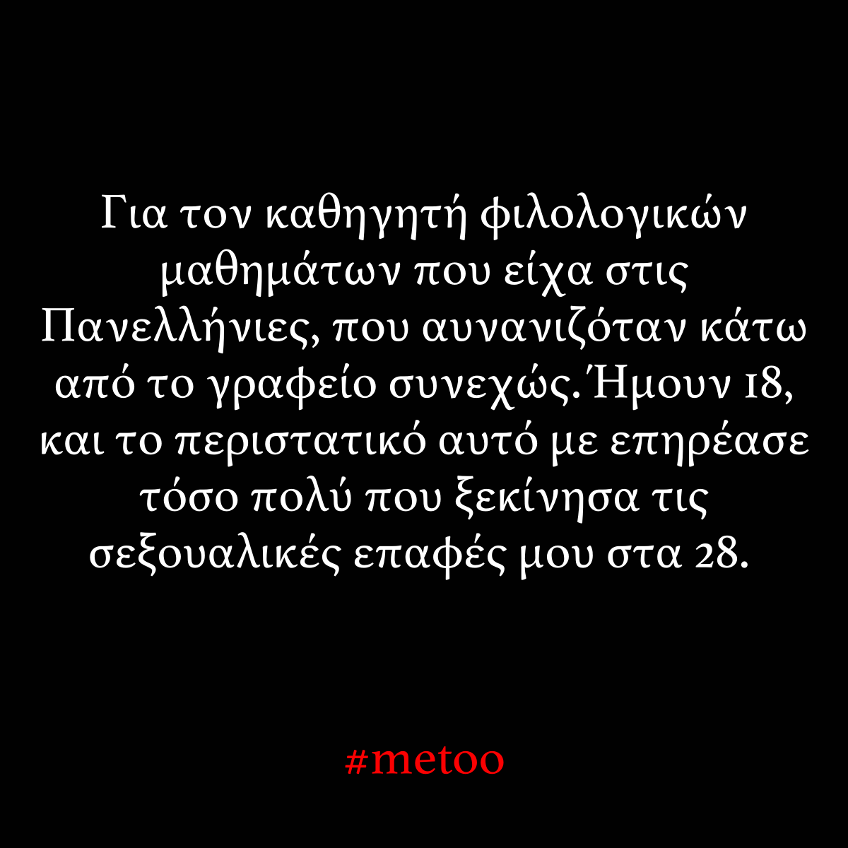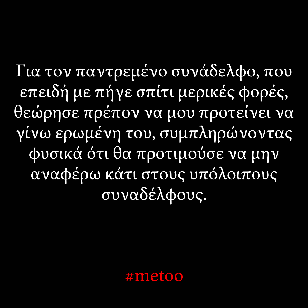 Τα μηνύματα που έλαβα ήταν αμέτρητα, από κοπέλες όλων των ηλικιών, και εξιστορούσαν περιστατικά λεκτικής και σωματικής βίας, εκφοβισμού, βιασμού, σεξουαλικής παρενόχλησης αλλά και παιδοφιλίας. Αποφάσισα να μη γράψω τίποτα. Οι κοπέλες που μίλησαν, στέλνοντας δεκάδες μηνύματα και ζητώντας να ακουστεί η φωνή τους, είναι τα μόνα λόγια που χρειάζεται να διαβάσει κανείς.