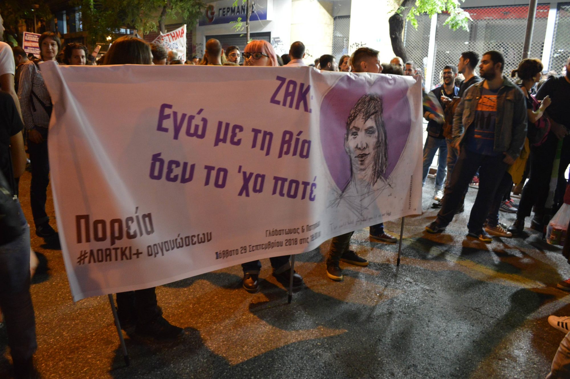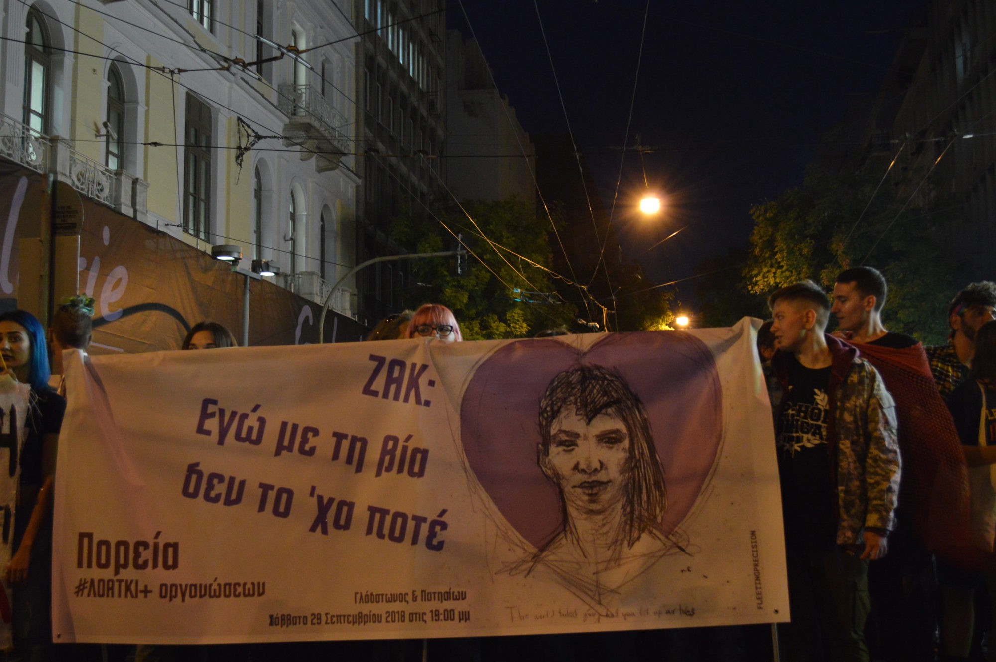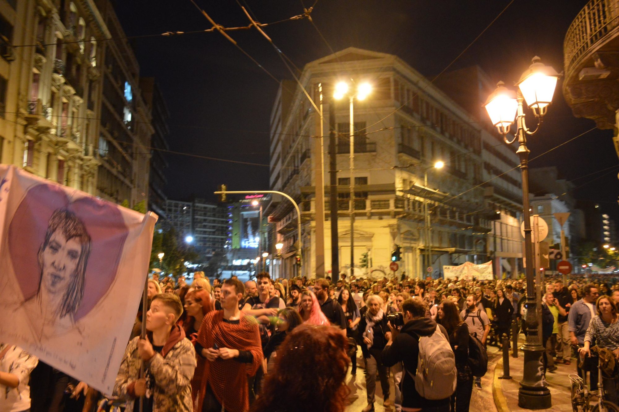 Πορεία διαμαρτυρίας για τη δολοφονία του Ζακ Κωστόπουλου πραγματοποιήθηκε εχθές στο κέντρο της Αθήνας. Την κινητοποίηση είχε εξαγγείλει η ΛΟΑΤΚΙ κοινότητα.