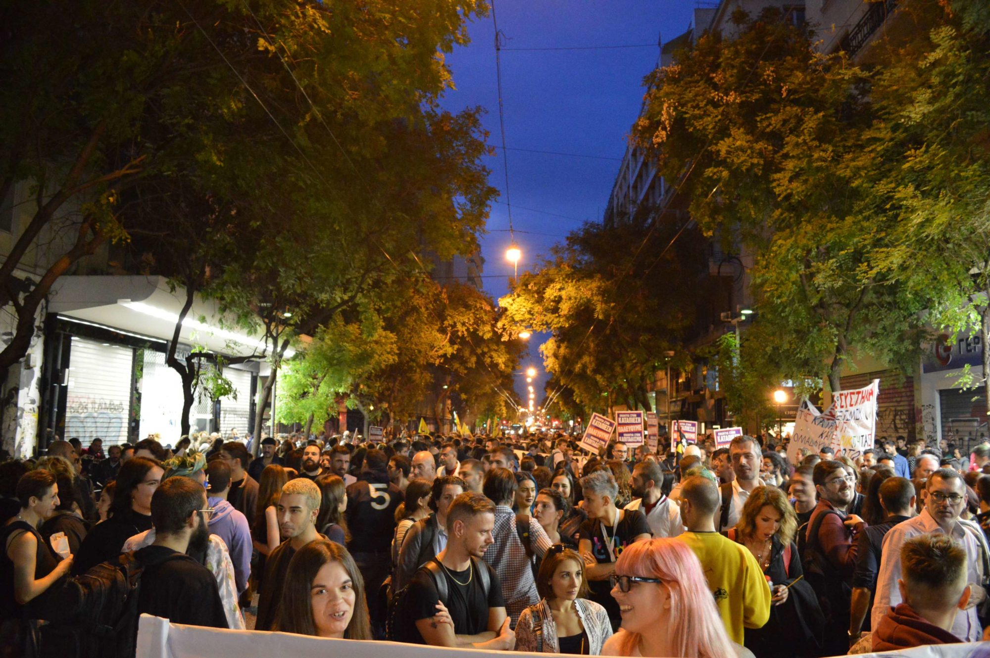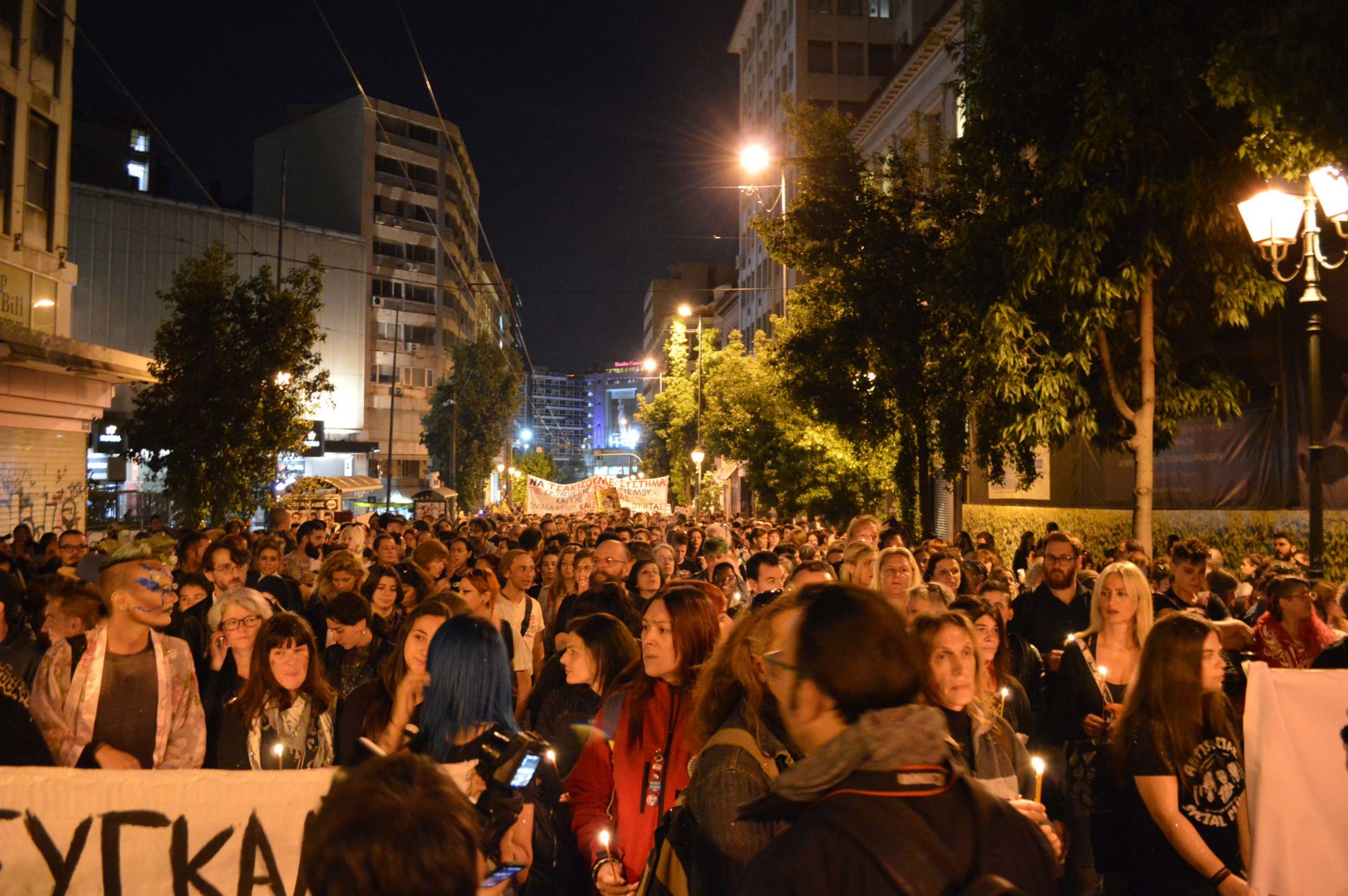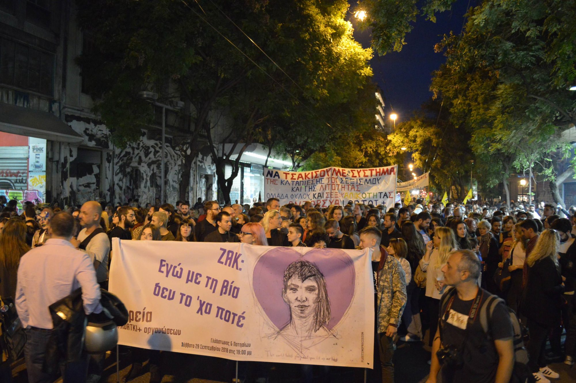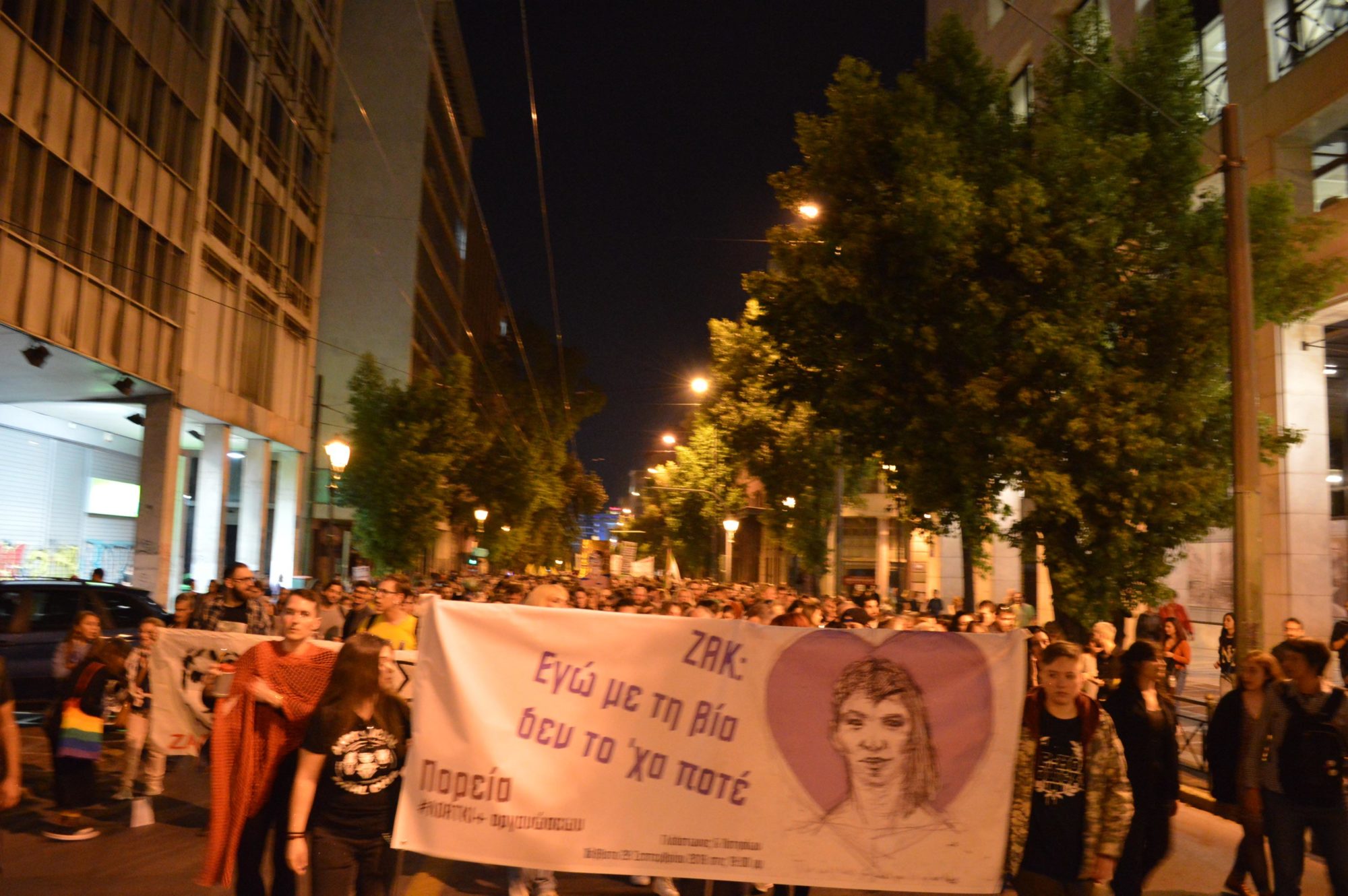 Πορεία διαμαρτυρίας για τη δολοφονία του Ζακ Κωστόπουλου πραγματοποιήθηκε εχθές στο κέντρο της Αθήνας. Την κινητοποίηση είχε εξαγγείλει η ΛΟΑΤΚΙ κοινότητα.