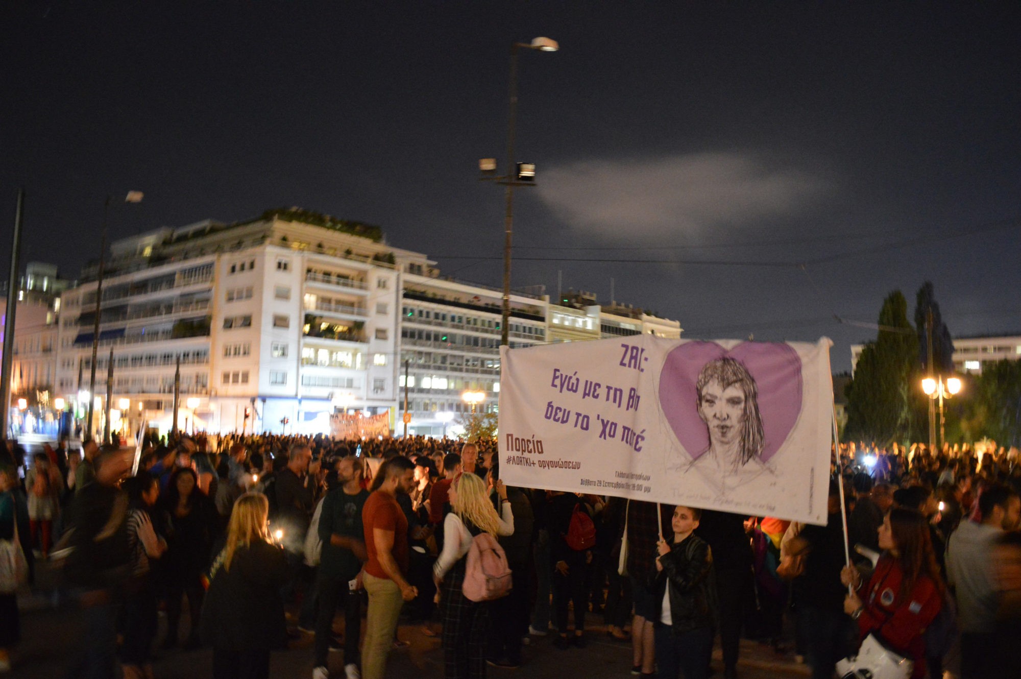 Με κεντρικό σύνθημα «Εγώ με τη βία δεν το είχα ποτέ», οι διαδηλωτές συγκεντρώθηκαν αρχικά στην οδό Γλάδστωνος, στο σημείο που ξεψύχησε ο 33χρονος και κατευθύνθηκαν προς το Σύνταγμα.