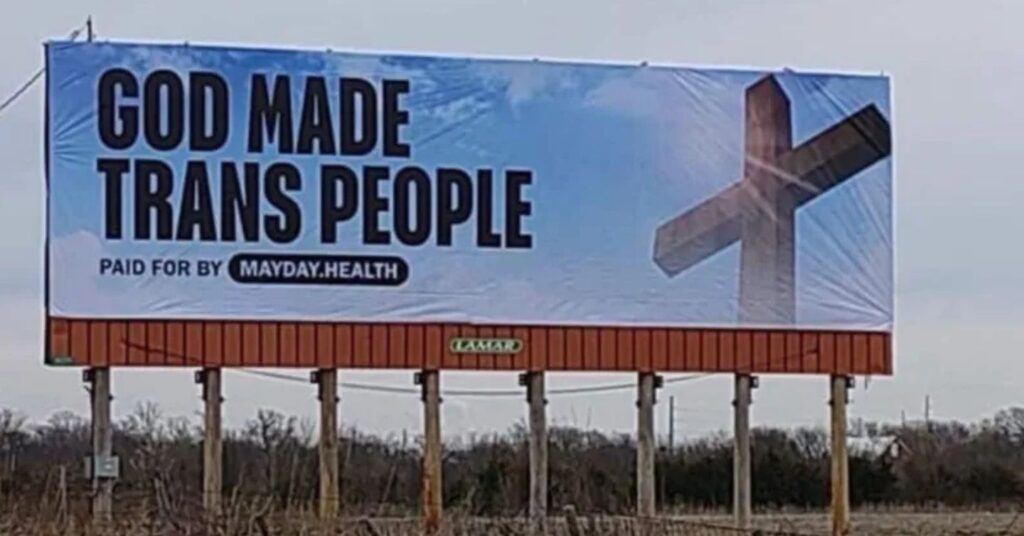 κόσμος·νέα Το Κάνσας απαντά στον τρανσφοβικό νόμο με μια μεγάλη πινακίδα Μια μεγάλη πινακίδα υπέρ της τρανς κοινότητας εμφανίστηκε στο Κάνσας, ως απάντηση στον πρόσφατο τρανσφοβικό νόμο. Με τη φράση «Ο θεός έφτιαξε 31/03/2026
