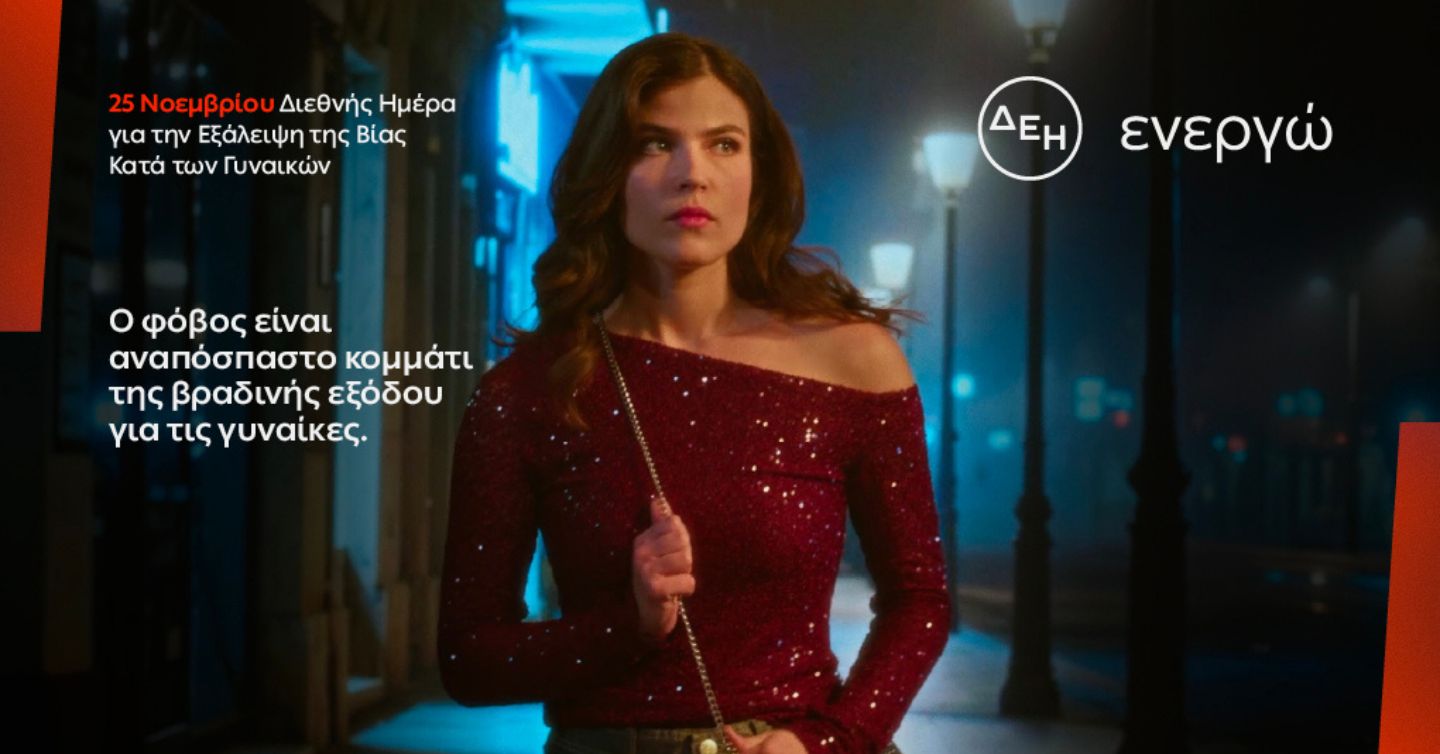 Για πέμπτη συνεχή χρονιά η ΔΕΗ συμμετέχει ενεργά στη Διεθνή Ημέρα για την Εξάλειψη της Έμφυλης Βίας, φωτίζοντας μια καθημερινή και βαθιά ριζωμένη εμπειρία ανασφάλειας, τον φόβο που βιώνουν γυναίκες όλων των ηλικιών κατά τη βραδινή τους έξοδο. Η νέα πανελλαδική έρευνα επιβεβαιώνει ότι για 8 στις 10 γυναίκες η επιστροφή από μια βραδινή έξοδο δεν αποτελεί μια απλή διαδρομή, αλλά μια διαδικασία που συνοδεύεται από φόβο, επιφύλαξη και συστηματικά μέτρα αυτοπροστασίας.