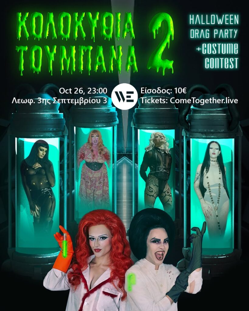 H Cyka de la Blyat (@cykadelablyat ), η Sozie (@atcminos ) και η MarKem (@mar_kem_ )θα συναντήσουν τις γνωστές σας οικοδέσποινες στη σκηνή του WE για το μεγαλύτερο drag party της Θεσσαλονίκης. Βάλτε το πιο τρομακτικό σας κοστούμι (το καλύτερο κερδίζει ένα spooky έπαθλο) και ακολουθήστε τες μέσα στο σκοτάδι.