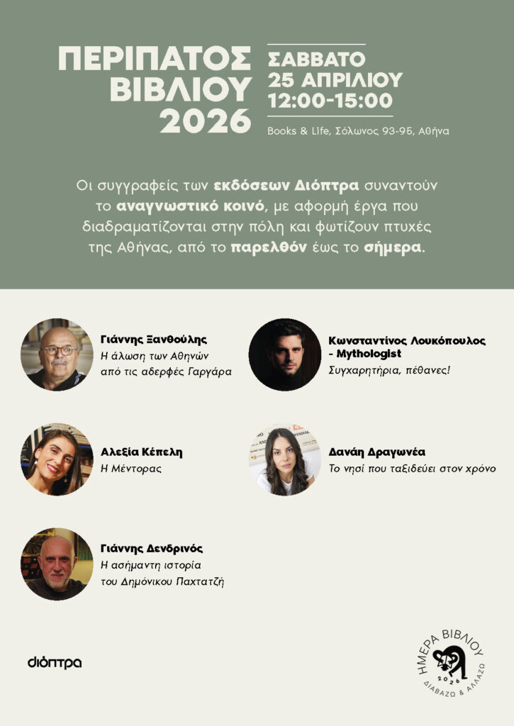 Οι εκδόσεις Διόπτρα συμμετέχουν με χαρά σε αυτόν τον σημαντικό θεσμό, με επίκεντρο το βιβλιοπωλείο μας Books & Life, στη Σόλωνος 93-95
