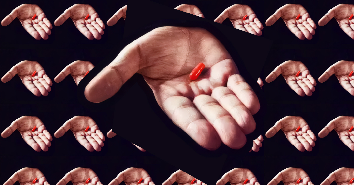 Αντιμέτωπος με την επιλογή στην ταινία να πάρει το κόκκινο χάπι ή το μπλε χάπι, ο Κιάνου Ριβς επιλέγει το κόκκινο χάπι για να ξεφύγει από την προσομοίωση του Matrix και να ξυπνήσει στην πραγματικότητα.