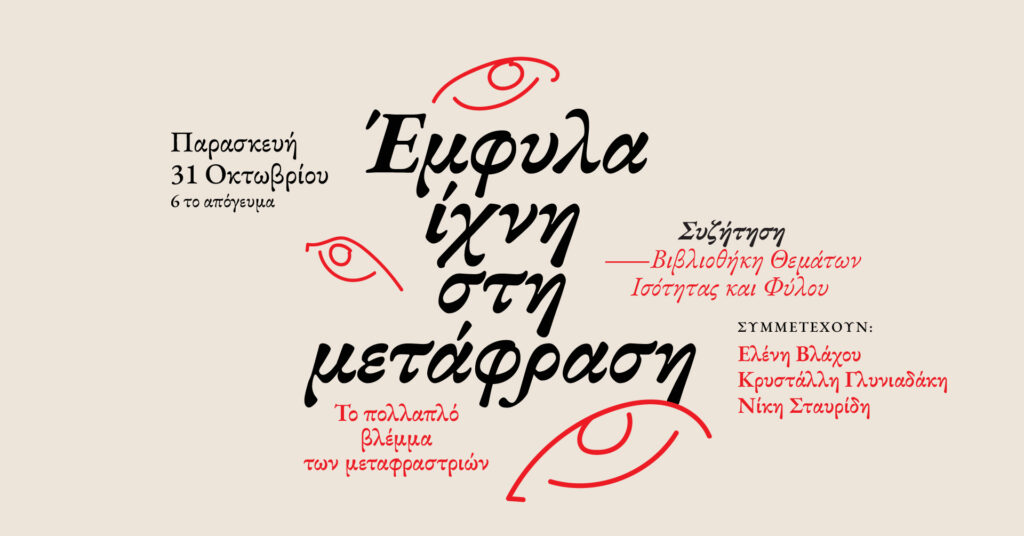 Έμφυλα ίχνη στη μετάφραση: το πολλαπλό βλέμμα των μεταφραστριών @ Βιβλιοθήκη Θεμάτων Ισότητας και Φύλου (Κρατίνου 9 και Αθηνάς, Αθήνα)