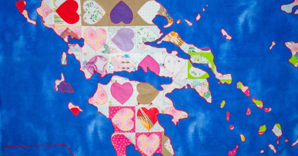 Το έργο “True Blue” με τον χάρτη της Ελλάδας κατασκευασμένο από σεντόνια που έχουν δωρίσει γυναίκες στην καλλιτέχνιδα, με την προϋπόθεση ότι έχουν ξεκουραστεί πάνω σε αυτά και έχουν ονειρευτεί έναν κόσμο ισότητας και δικαιοσύνης. Και την διαδραστική εγκατάσταση «Παρατηρώ και Γράφω», έναν λαβύρινθο από κρεμασμένα σεντόνια, μέσα στον οποίο ο επισκέπτης κινείται βιωματικά και ανακαλύπτει κρυμμένα νοήματα.