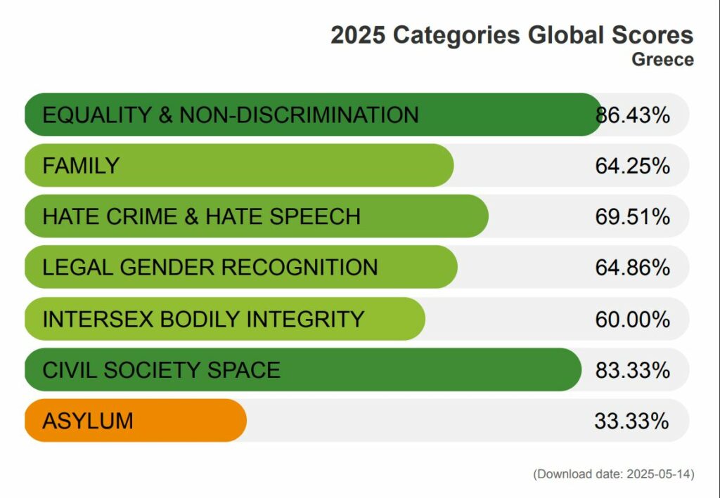 Δημοσιεύθηκε ο Rainbow Map της ILGA-Europe για το 2025, με την Ελλάδα να κατέχει την έβδομη θέση, ανάμεσα σε 49 ευρωπαϊκές χώρες.