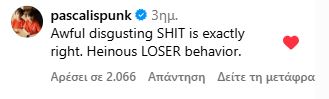Στην ανάρτηση σχολίασε και ο παντοτινός σύμμαχος της τρανς κοινότητας, Πέντρο Πασκάλ, γράφοντας: «Αποκρουστική loser συμπεριφορά».