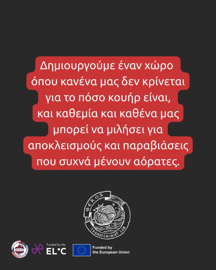 Η φροντίδα και η αλληλεγγύη ανάμεσα στις ΛΟΑΤΚΙ θηλυκότητες είναι ουσιαστική για να περιοριστεί η βία και η απομόνωση – και η φωνή μας μετράει. Η συλλογική μας γνώση και αλληλεγγύη είναι αυτή που φέρνει αλλαγή, και αυτή η έρευνα είναι ένα βήμα προς τα εκεί.