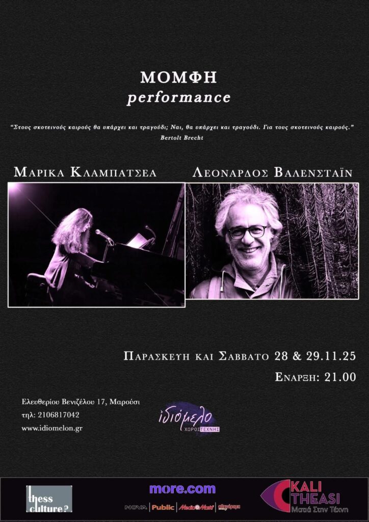 Η Μαρίκα Κλαµπατσέα, σοπράνο, πιανίστα και συνθέτις και ο Λεονάρδος Bαλενστάιν, πιανίστας και συνθέτης, παρουσιάζουν την performance με τον τίτλο Μομφήστο χώρο Ιδιόμελο στις 28 & 29 Νοεμβρίου.