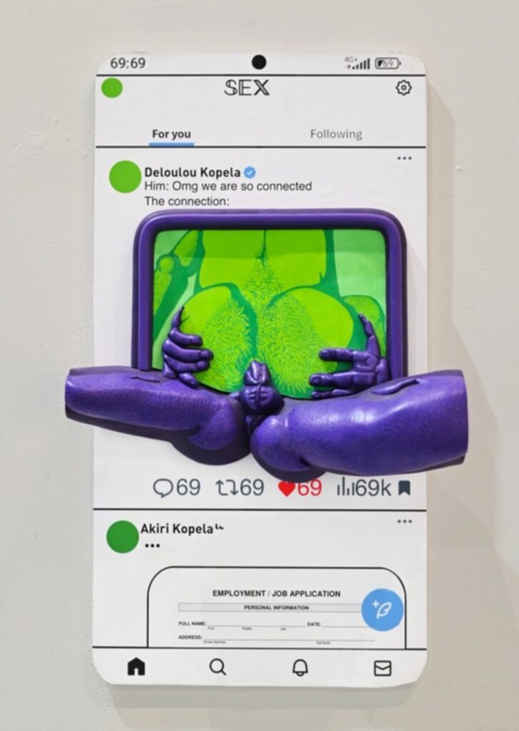 Μέσα τα έργα του αποδομεί με χιουμοριστικό τρόπο τα στερεότυπα που αναπαράγονται στο ίντερνετ από ετεροκανονικούς γκέι άντρες, για το πώς ένα άτομο πρέπει να είναι αρρενωπό, και δημιουργεί εικαστικά μια καινούργια αρρενωπότητα που είναι πιο κοντά σε αυτόν.