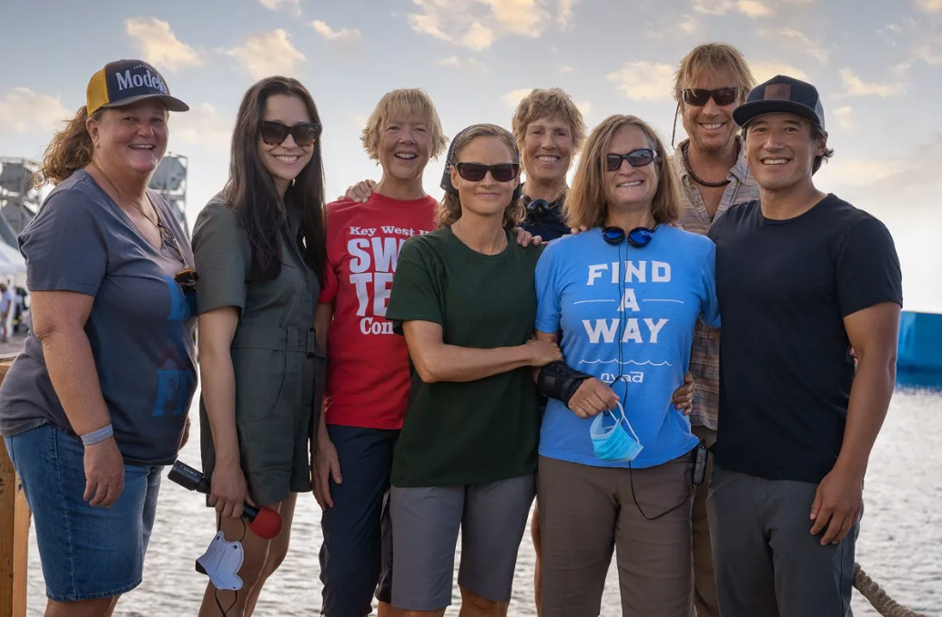 Καθ’ όλη τη διάρκεια του άθλου των 110 μιλίων, η φίλη και προπονήτρια της Nyad, Bonnie Stoll, ήταν στο πλευρό της, την επευφημούσε, την καθοδηγούσε απομακρύνοντας τις μέδουσες, και παρακολουθούσε τη διατροφή της. Οι πρώτες εικόνες από την ταινία του Netflix με πρωταγωνίστρια την Annette Bening ως Nyad, και από την κουήρ, και τη διπλά βραβευμένη με Όσκαρ, Jodie Foster, ως Stoll, κυκλοφόρησαν.