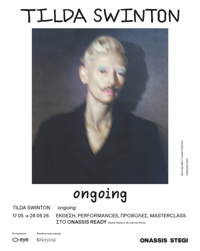 Περφόρμερ, εικαστικός και fashion icon, η κορυφαία Τίλντα Σουίντον συνομιλεί με τους καλλιτεχνικούς της συνεργάτες και φίλους στη μοναδική, προσωπική έκθεση Ongoingστον νέο χώρο του Ιδρύματος Ωνάση, Onassis Ready, από 17 Μαΐου έως 28 Ιουνίου. Η φύση, οι αναμνήσεις, η ίδια η ουσία της μνήμης, οι πρόγονοι και τα πνεύματα, οι φιλίες και οι καλλιτεχνικές συμπράξεις, καθώς και ο μεταιχμιακός χώρος της δημιουργίας βρίσκονται στον πυρήνα του έργου της Τίλντα Σουίντον, θεματικές τις οποίες διερευνά συχνά μαζί με τους δημιουργικούς συνεργάτες της. Στην έκθεση Ongoing, οι έννοιες αυτές προσεγγίζονται μέσα από διαφορετικά εκφραστικά μέσα. Η σπουδαία πορεία της Σουίντον ξεδιπλώνεται σε οκτώ ενότητες, με άξονα τους πιο στενούς της συνεργάτες.