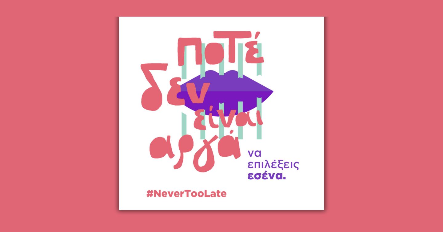 Με αφορμή την Παγκόσμια Ημέρα για την Εξάλειψη της Έμφυλης Βίας, το Κέντρο Διοτίμα πραγματοποίησε την καμπάνια «Ποτέ δεν είναι αργά», φωτίζοντας τις αθέατες όψεις του φαινομένου.