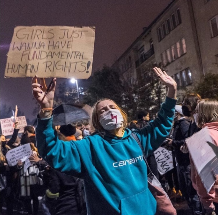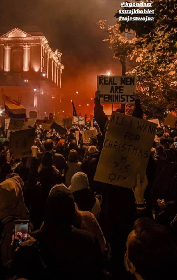 Στη Βαρσοβία, την πρωτεύουσα της Πολωνίας, διαδηλώτριες/τές εμπόδισαν την κυκλοφορία σε μερικές από τις πιο πολυσύχναστες διασταυρώσεις της πόλης για περίπου μία ώρα, κρατώντας πλακάτ, με ένα εξ’ αυτών να γράφει: