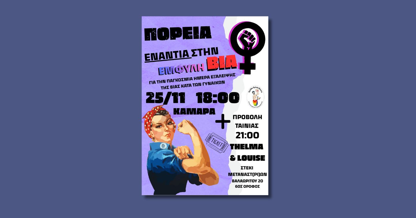 Κάλεσμα σε πορεία για την Παγκόσμια Ημέρα για την Εξάλειψη της Έμφυλης Βίας απευθύνει η ομάδα Sylvia Rivera στη Θεσσαλονίκη, αφιερώνοντάς την σε κάθε ζωή που χάθηκε μέσα σε ένα πλαίσιο κοινωνικής και θεσμικής πατριαρχικής βίας.