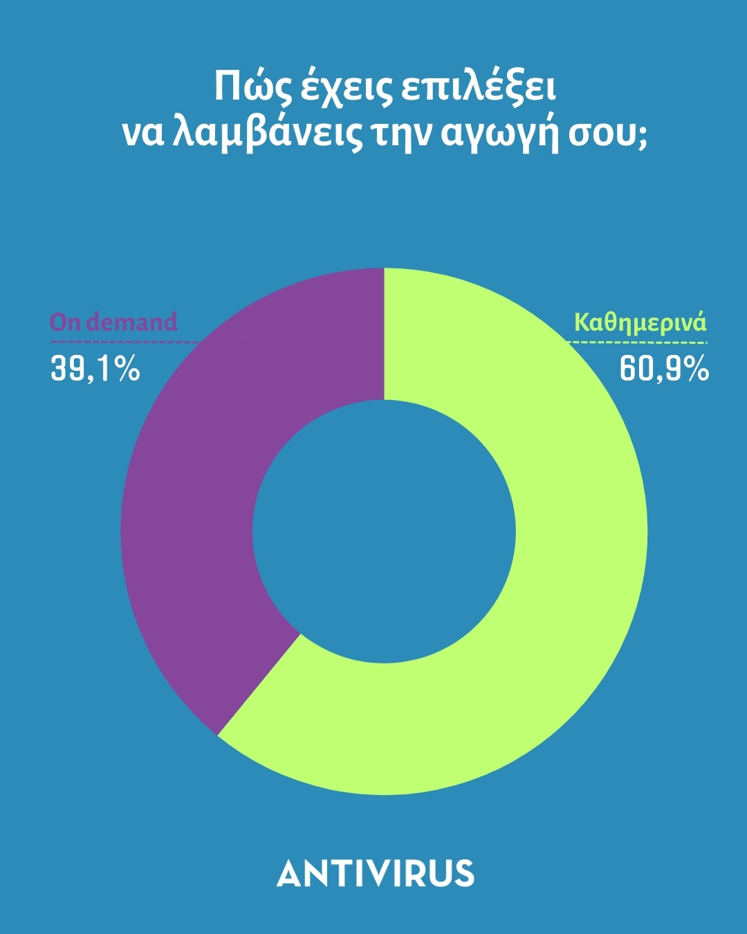 Η καθημερινή λήψη είναι η πιο συχνή επιλογή μεταξύ των χρηστών (60,9%), προσφέροντας μεγαλύτερο αίσθημα ασφάλειας, ενώ το σχήμα on-demand ακολουθείται από 39,1%, υποδεικνύοντας διαφορετικές ανάγκες και τρόπους χρήσης στην κοινότητα.
