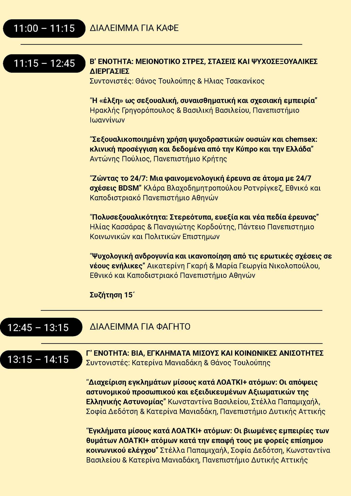 Ο νεοσύστατος κλάδος ΛΟΑΤΚΙ+ ψυχολογίας της Ελληνικής Ψυχολογικής Εταιρείας σε συνεργασία με το Ερευνητικό Εργαστήριο Ε.ΣΥ.ΨΥ.ΚΟΠ του Τμήματος Κοινωνικής Εργασίας διοργανώνει την πρώτη του ημερίδα.
