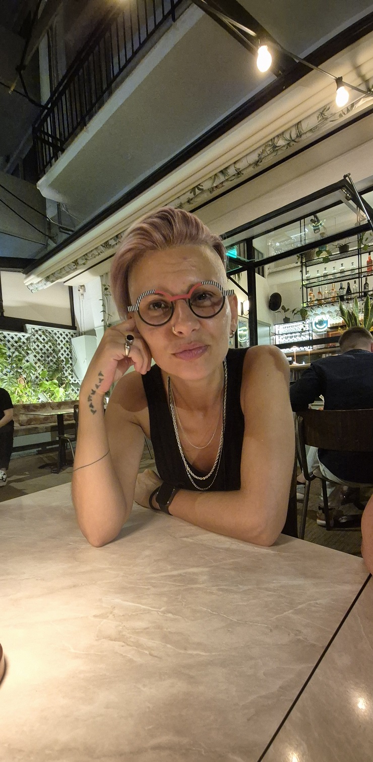Είμαι μεταναστό/προσφυγ@ από την Κωνσταντινούπολη και δραστηριοποιούμαι στο διαθεματικό Κουήρ/Φεμινιστικό Κίνημα τα τελευταία 20 χρόνια. Πριν γίνω καλλιτεχνό, ήμουν ακτιβιστό. Τα κινήματά μας είχαν συνδέσεις: ακτιβιστές από την Ελλάδα έρχονταν στην Κωνσταντινούπολη και εμείς πηγαίναμε στην Αθήνα και τη Θεσσαλονίκη για υποστήριξη, συζητήσεις και φλερτ. Ποτέ δεν φανταζόμουν ότι θα γίνω μεταναστό. Δεν είχα ποτέ ονειρευτεί να αφήσω την Κωνσταντινούπολη. Όταν ήρθα εδώ, ένιωσα σαν να καταστράφηκε ο κόσμος μου. Έπρεπε να πενθήσω για την προηγούμενη ζωή μου. Ήταν επώδυνο. Για να κρατηθώ στη ζωή, επικεντρώθηκα στην τέχνη. Συνάντησα τυχαία τα ReFocus Media Labs Athens, έναν ΜΚΟ που παρέχει εκπαίδευση στα μέσα ενημέρωσης για κινηματογραφία, φωτογραφία και δημοσιογραφία σε μετανάστες. Βρήκα ξανά τη δύναμή μου. Τώρα συνεχίζω τις σπουδές μου στον κινηματογράφο, δουλεύοντας σε διάφορα δημιουργικά πρότζεκτ. Είμαι επίσης μέλος του Athens Museum of Queer Arts (AMOQA) και νοιάζομαι για την οικοδόμηση κοινότητας, την αλληλεγγύη, τη δημιουργία γεφυρών και το άνοιγμα χώρων για κουήρ άτομα.