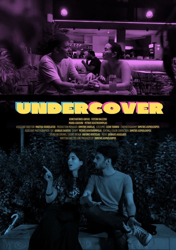 Το Undercover είναι μια low budget ταινία μικρού μήκους που γύρισα αποκλειστικά με φίλους, για να τους ενσωματώσω σε ένα από τα πολλά κινηματογραφικά σύμπαντα που θέλω να δημιουργήσω. Μιλάει, μέσω της queer εμπειρίας, για την επικάλυψη της πραγματικότητας από την ψηφιακή “ζωή”.