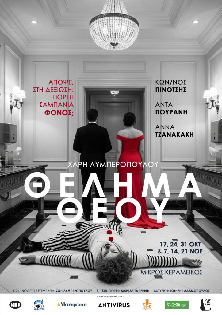 Η παράσταση “Θέλημα Θεού”, σε σύλληψη, κείμενο, σκηνοθεσία Χάρη Λυμπερόπουλου, έρχεται 17, 24, 31 Οκτωβρίου & 7, 14, 21 Νοεμβρίου 2025 στο Θέατρο Μικρός Κεραμεικός.