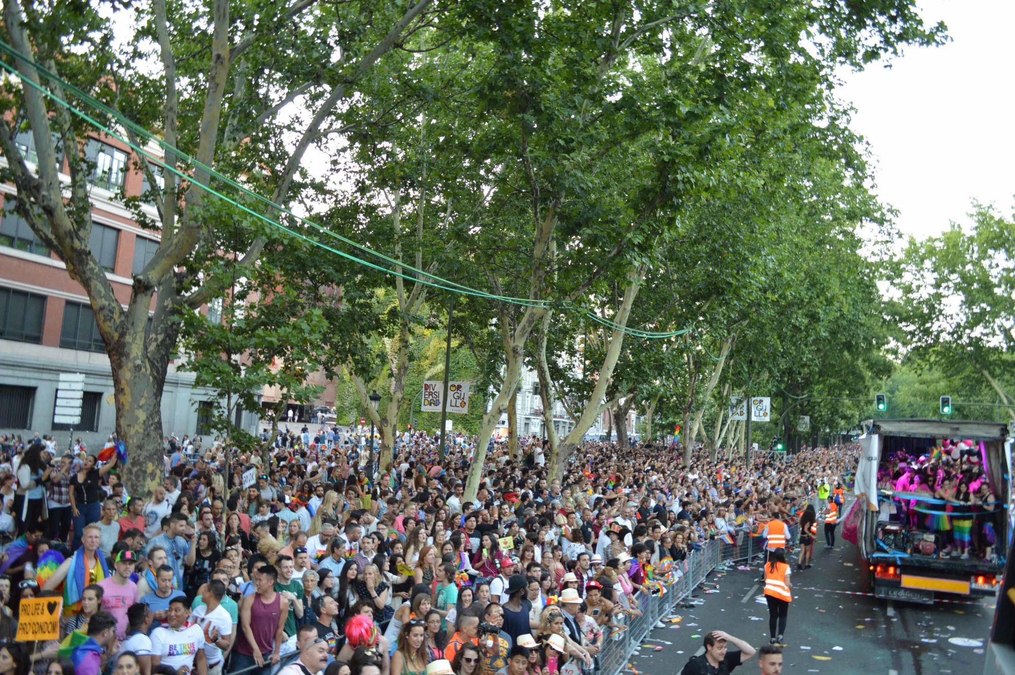 Σύμφωνα με τους διοργανωτές, περισσότερα από 2.000.000 άτομα -από κάθε μέρος του πλανήτη- ξεχύθηκαν στους δρόμους της ισπανικής πρωτεύουσας και με σύνθημα «Ζήτω η ζωή» (Viva la vida) γιόρτασαν την LGBT+ υπερηφάνεια. Το σκηνικό έμοιαζε κάτι παραπάνω από ιδανικό, αφού ολόκληρη η πόλη ήταν ντυμένη στα χρώματα του ουράνιου τόξου. Μαγαζιά, δρόμοι, μετρό και αρκετοί πολίτες συμμετείχαν στην μεγάλη αυτή γιορτή.