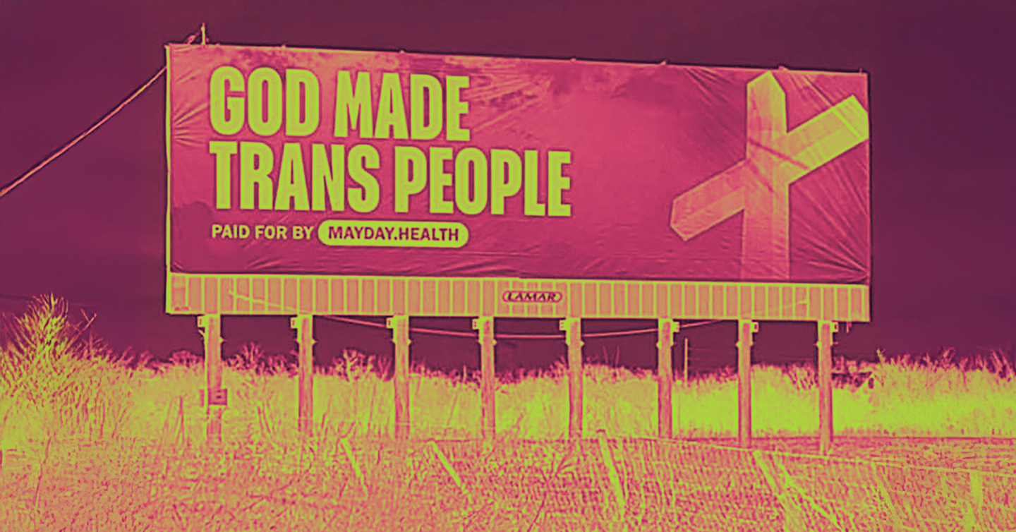 Κάθε διαφημιστική πινακίδα κατευθύνει τον κόσμο στην ιστοσελίδα της Mayday Health, ο οποίος παρέχει πληροφορίες για τη φροντίδα επιβεβαίωσης φύλου, καθώς και την ψυχική υγεία και την οικονομική υποστήριξη.