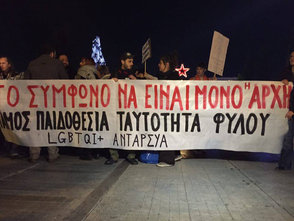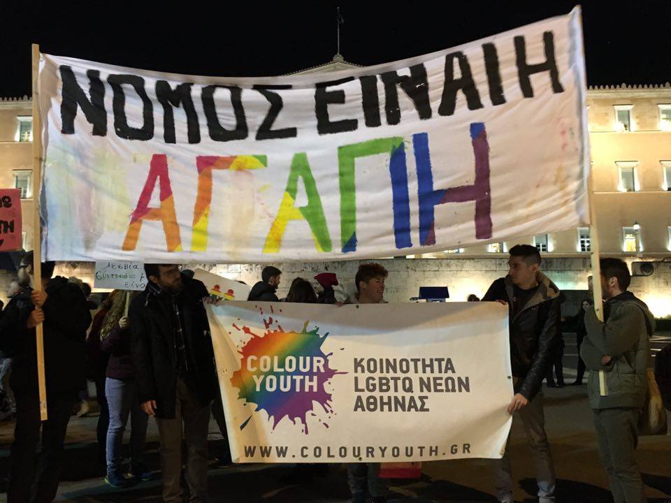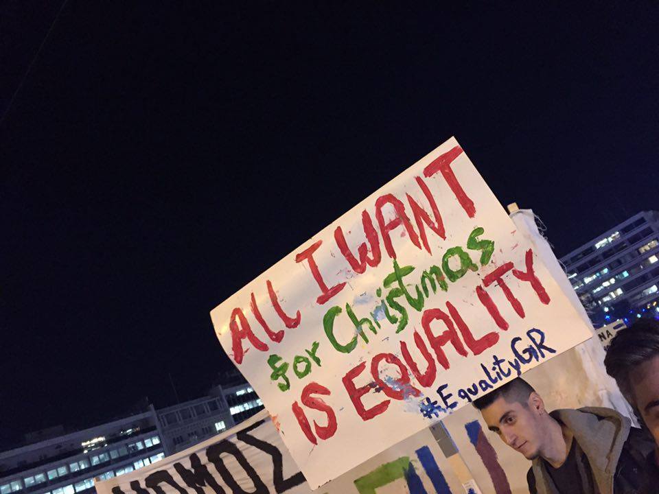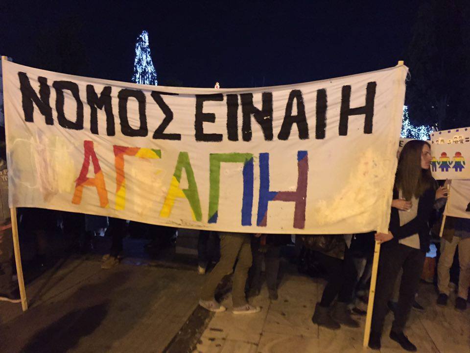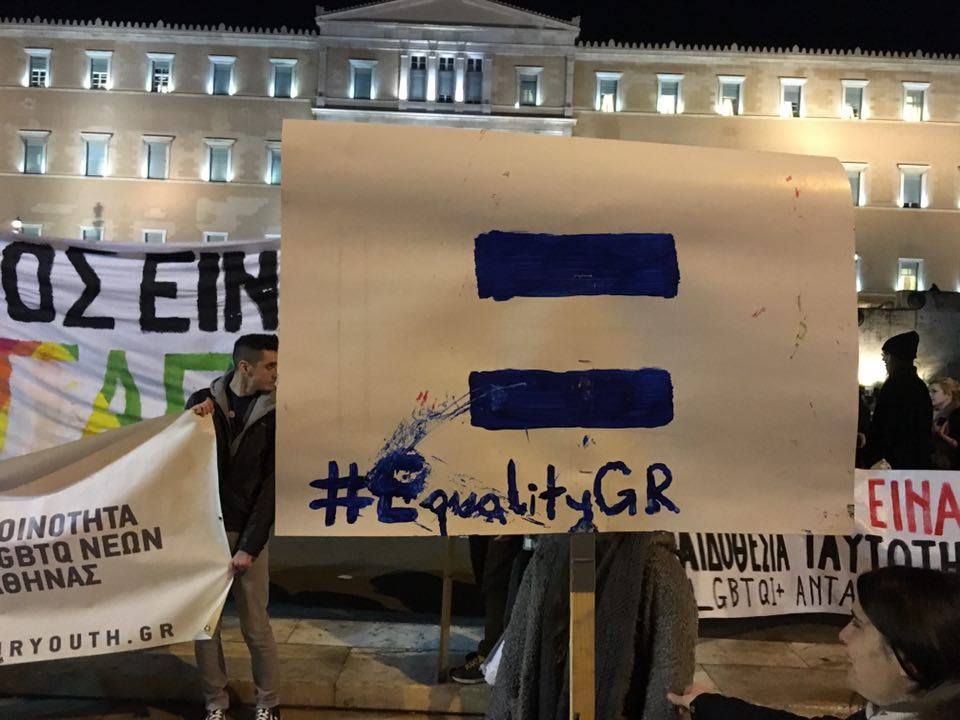 Πλήθος κόσμου είναι συγκεντρωμένος αυτή τη στιγμή έξω από τη Βουλή, δηλώνοντας ανοιχτά την υποστήριξή του σε μια Ελλάδα που τάσσεται υπέρ του συμφώνου, σε μια Ελλάδα που λέει όχι στις διακρίσεις.