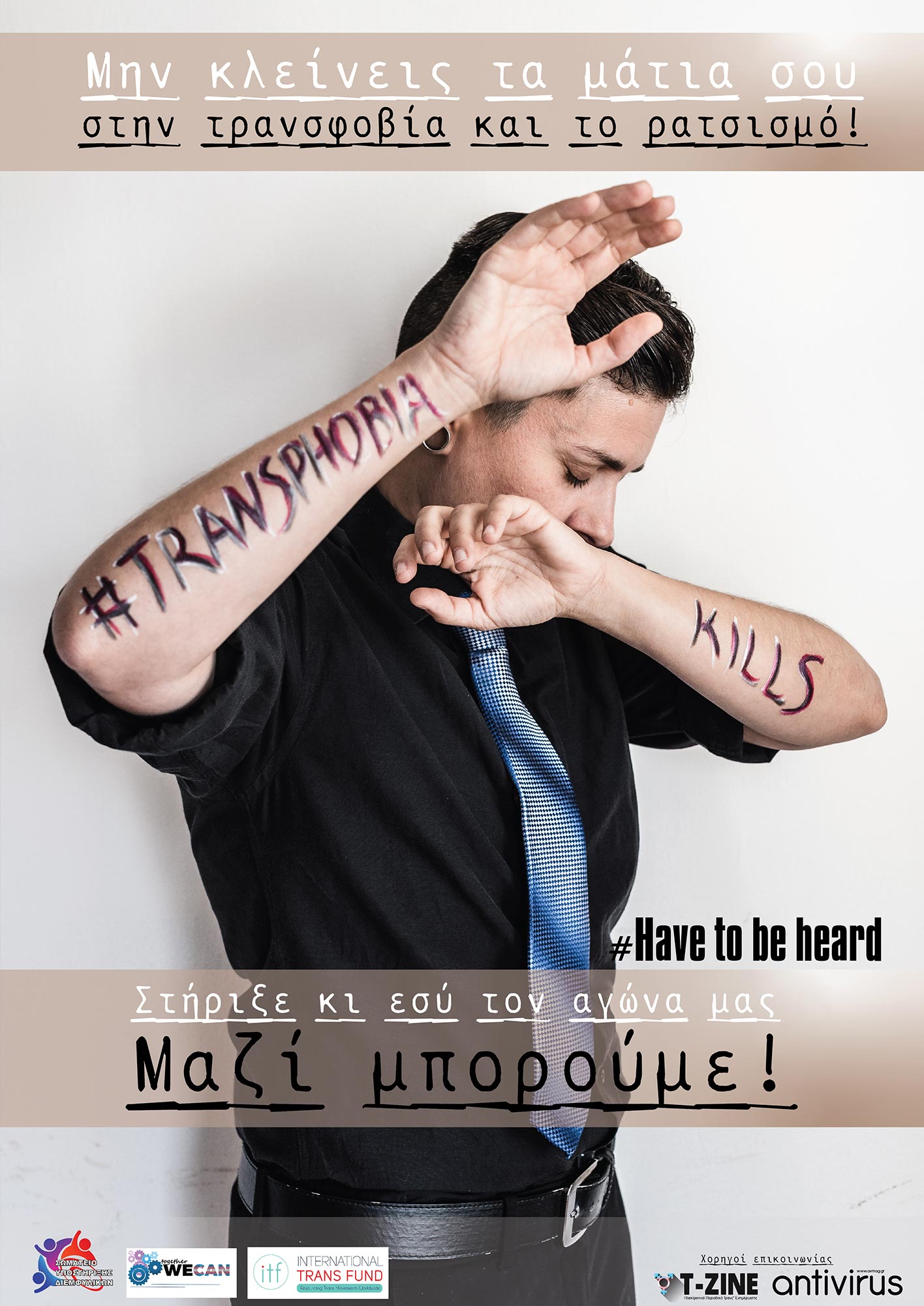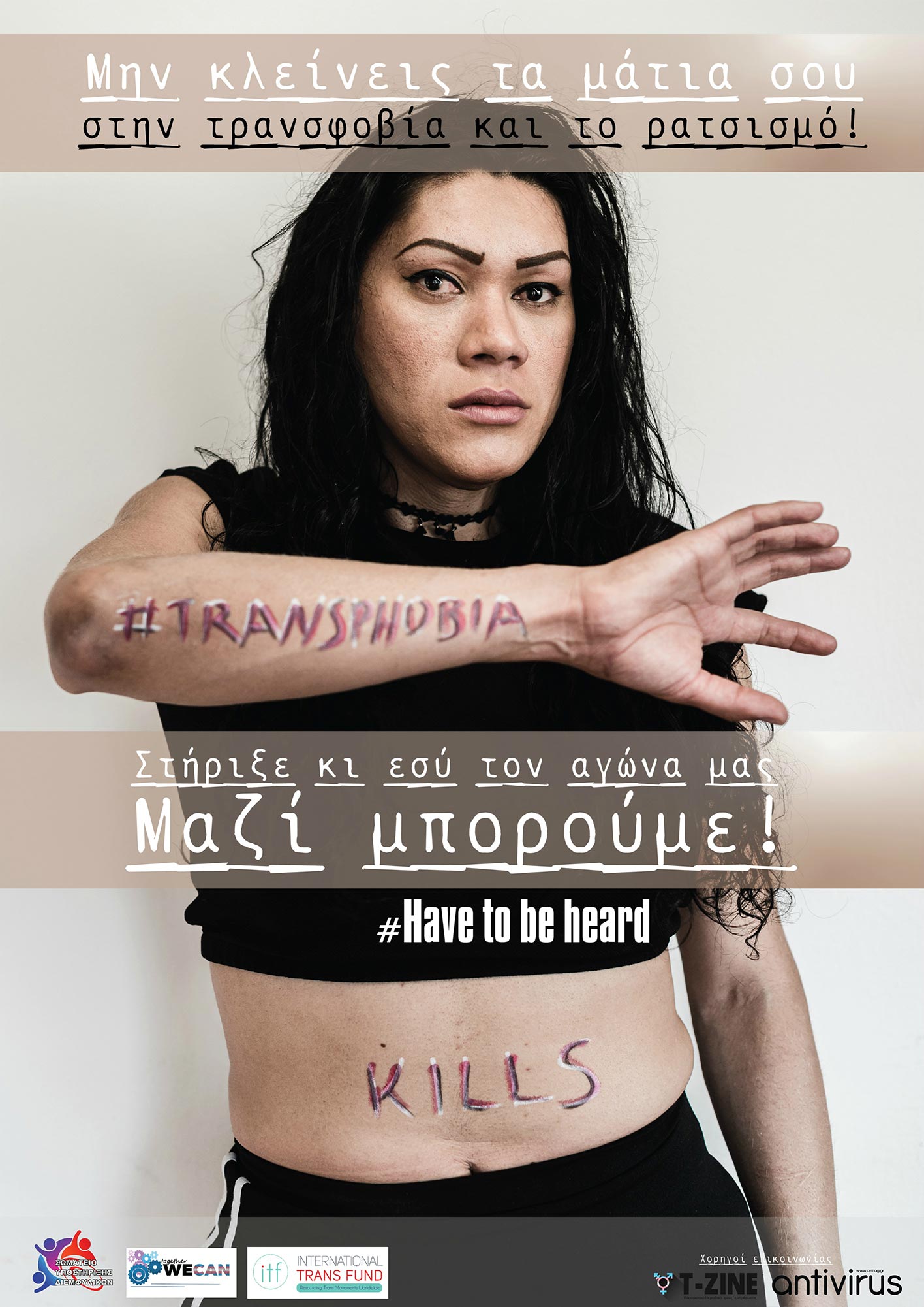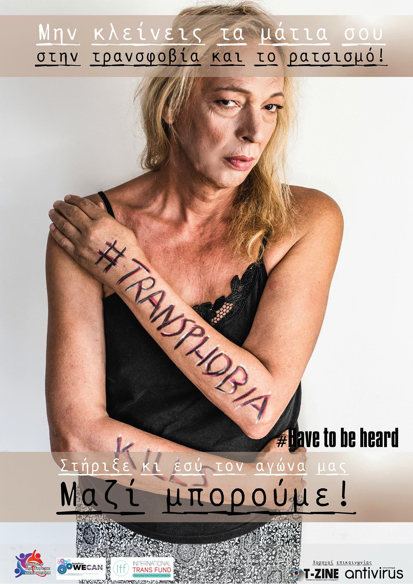 Hashtags: #HaveToBeHeard, #TransphobiaKills, #Have2BeHeard, #ITF, #Transphobia, #ΣΥΔ, #TogetherWeCan, #Transgender, #Refugees