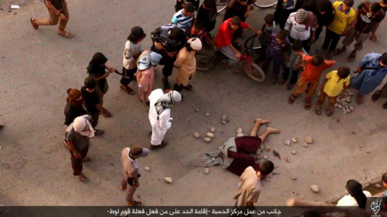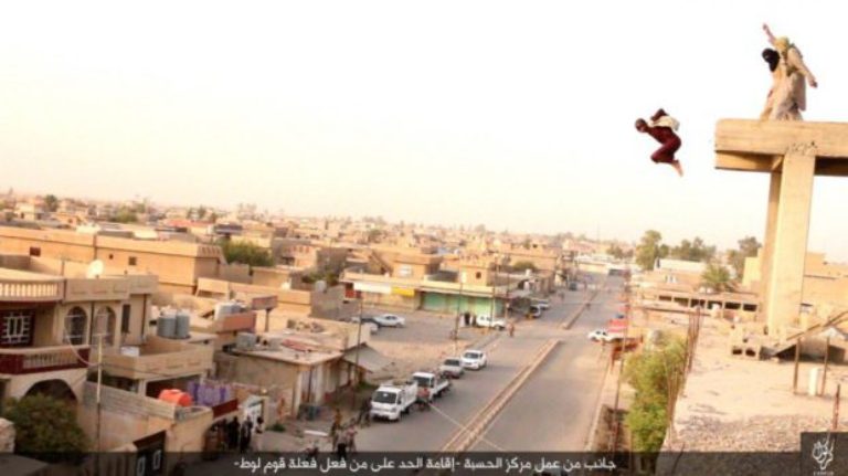 Το Ισλαμικό Κράτος συλλαμβάνει άνδρες που τους κατηγορεί για ομοφυλοφιλία και τους σκοτώνει πετώντας τους από ταράτσες. Με αυτό τον τρόπο εκτέλεσης οι τζιχαντιστές θεωρούν ότι «ο αμαρτωλός εξαγνίζεται».